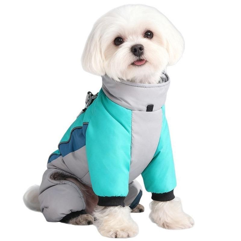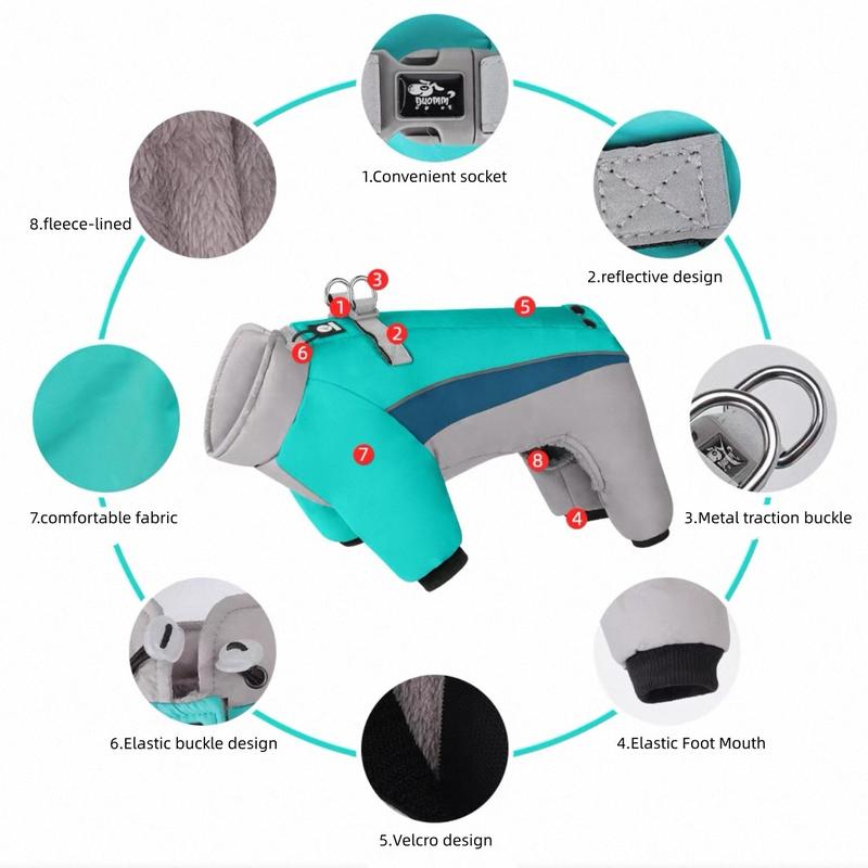 Autumn Winter New Fleece Dog Warm Clothes, Waterproof Leashable Four-Legged Pet Clothing, Portable Dog Jacket, Outdoor Reflective Anti-Cold Dog Coat