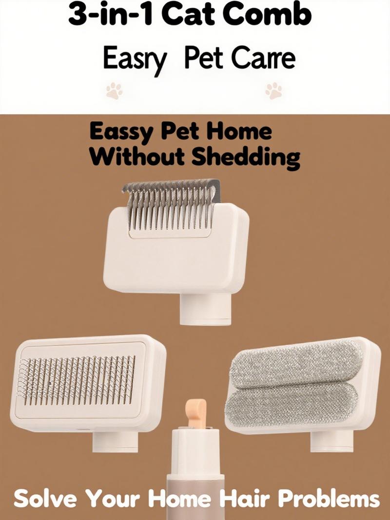 Introducing the all-round king in the pet comb world! This 3-in-1 comb is perfect for cats and dogs. It features three specialized brush heads to tackle every hair challenge. The fine-tooth brush head glides smoothly through your pet's coat, removing loose fur effortlessly. Ideal for cats and dogs with long, medium, or short hair.
